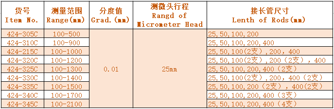 3.Different sizes of internal micrometers can be supplied upon request of customers.