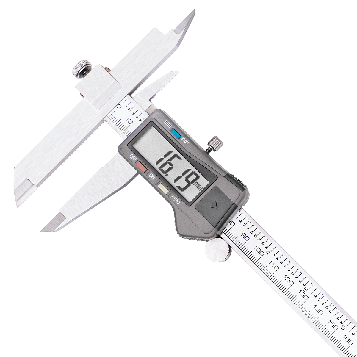 1.Manual power on/off. 2.Zero setting and mm/inch conversion at any position. 3.With data output interface. 4.The main scale jaw can be slid up and down to facilitate measurement of stepped sections.