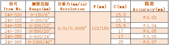 1.Manual power on/off. 2.Zero setting at any position. 3Metric/Inch system conversion at any position. 4.With data output interface.