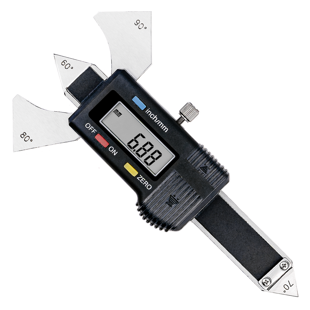 1.Manual power on/off. 2.Zero setting and mm/inch system conversion at any position at any position. 3.With data output interface. 4.To measure the welding thickness. 5.Has four angle samples.