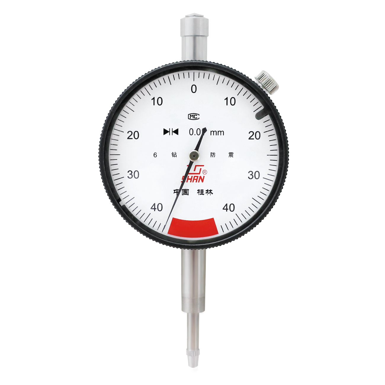 1.Peach shaped mechanical body. 2.Adjustable steel dial ring. 3.Anti-dirty screw rises while lifting measuring spindle. 4.With adjustable tolerance markers. 5.With dial locking screw.