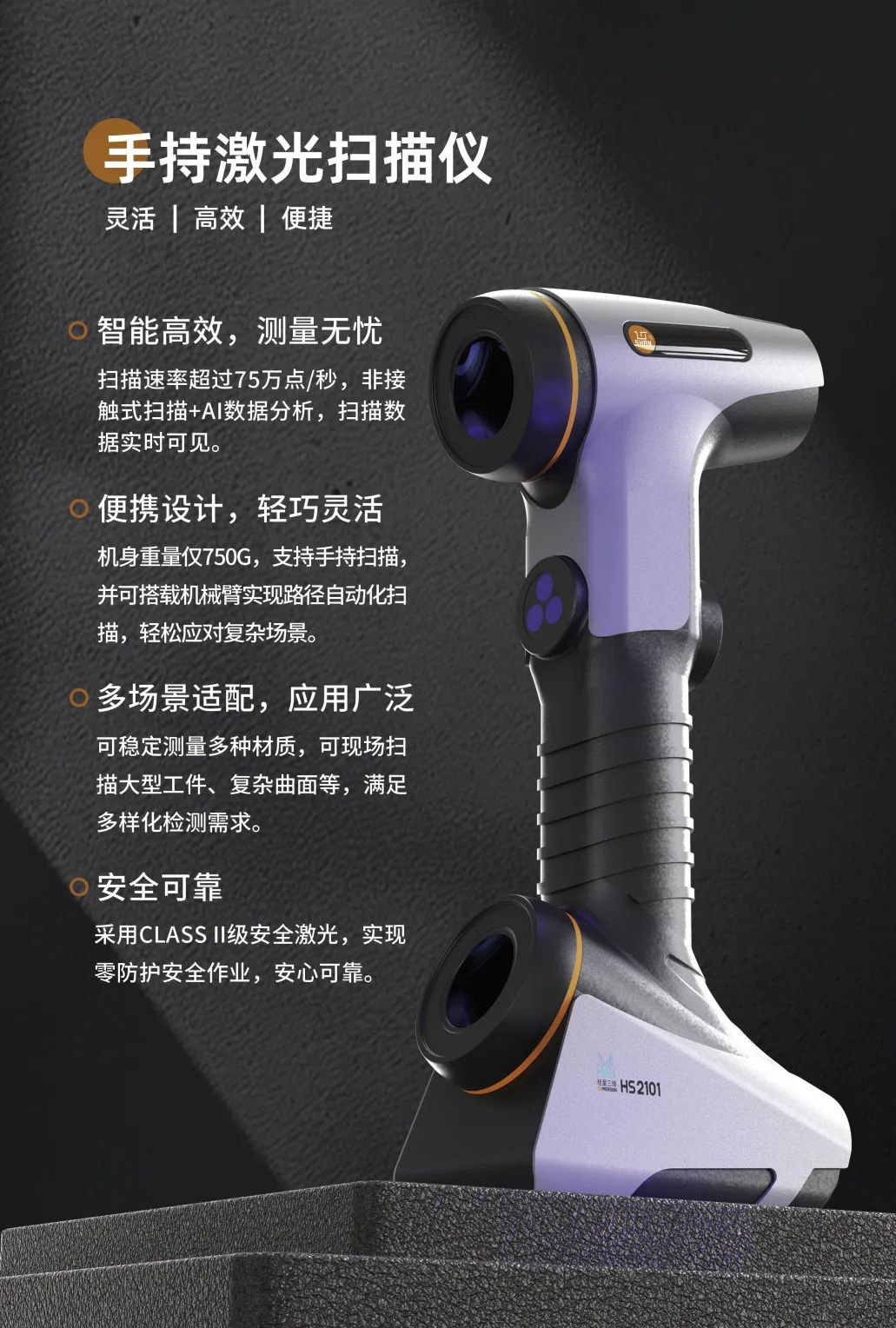 此次展會,桂量全新手持激光掃描儀成為全場矚目焦點。該產(chǎn)品集高精度、便攜性、智能化于一體,專為復(fù)雜工件快速檢測而生,適用于航空航天、汽車制造、模具加工等領(lǐng)域。