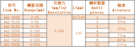 2.高精度可換測桿,更換時不需要校對零位 With precision interchangeable anvils and free of zero setting after changed.