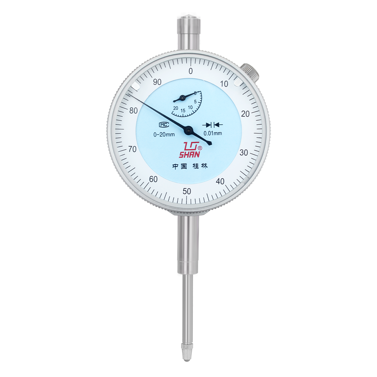 1.桃形百分表主體 Peach shaped mechanical body.. 2.表圈轉(zhuǎn)動(dòng)圈為金屬外圈 Adjustable steel dial ring. 3.帶表圈緊固裝置 With dial locking screw. 4.帶公差指示器 With adjustable tolerance markers.