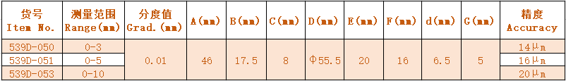 6.防震防塵防水 Measuring spindle sealed by means of rubber sleeve,thus preventing contamination by liquid and impurties.