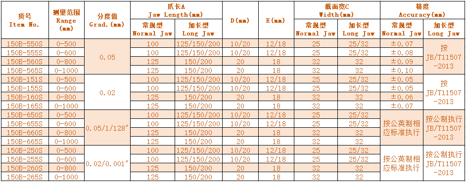 1.不銹鋼制造 Made of steainless steel. 2.可進(jìn)行外尺寸、內(nèi)尺寸、臺階尺寸測量 Can measure OD,ID,step dimensions. 3.長量爪型通常用于測量難以達(dá)到的位置 With special long jaw design.