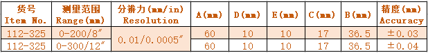 1.帶電源開關(guān) Manual power on/off. 2.任意位置清零 Zero setting at any position. 3.mm/in任意位置公英制轉(zhuǎn)換 Metric/Inch system conversion at any position. 4.帶數(shù)據(jù)輸出口 With data output interface.