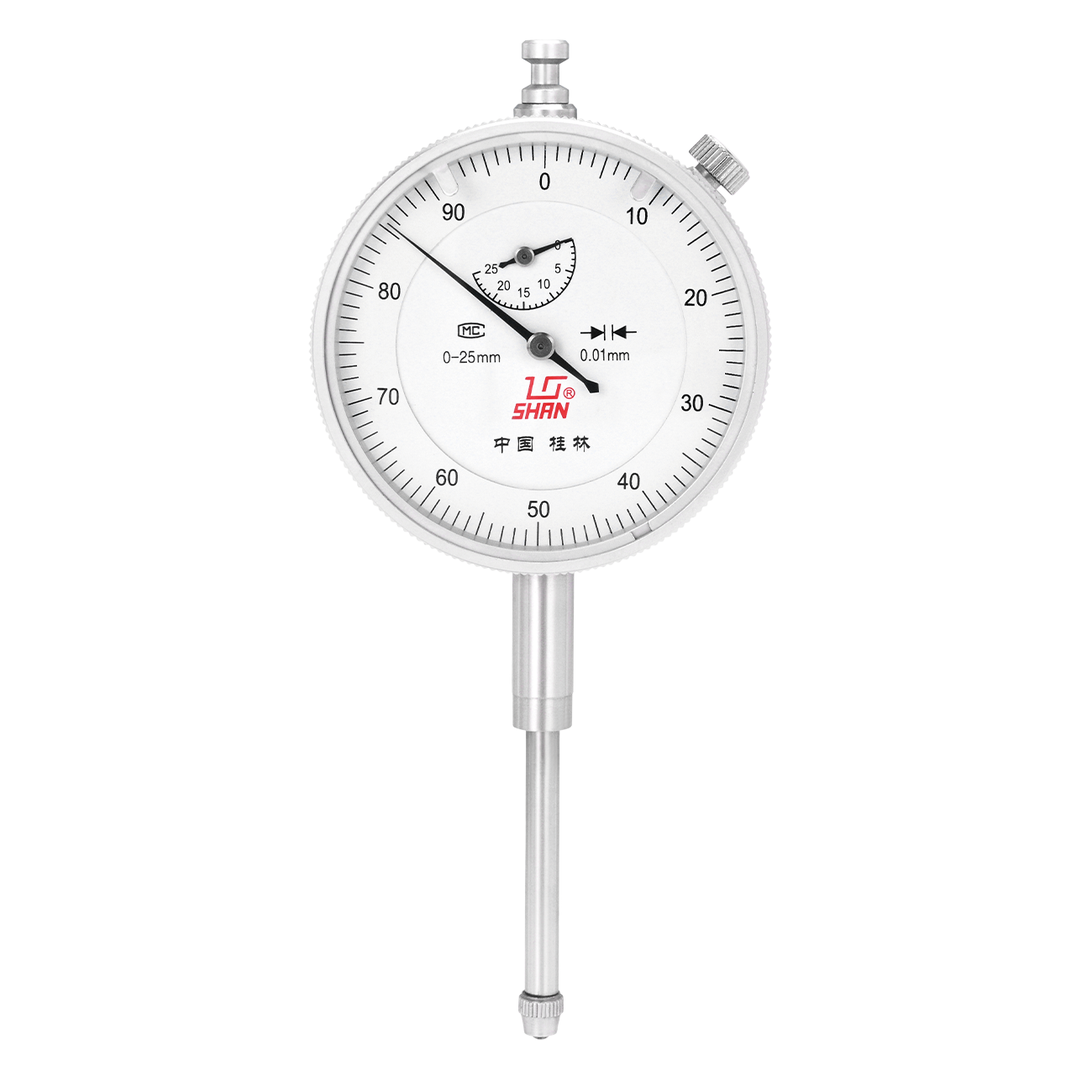 1.桃形百分表主體 Peach shaped mechanical body.. 2.表圈轉(zhuǎn)動圈為金屬外圈 Adjustable steel dial ring. 3.帶表圈緊固裝置 With dial locking screw. 4.帶公差指示器 With adjustable tolerance markers.