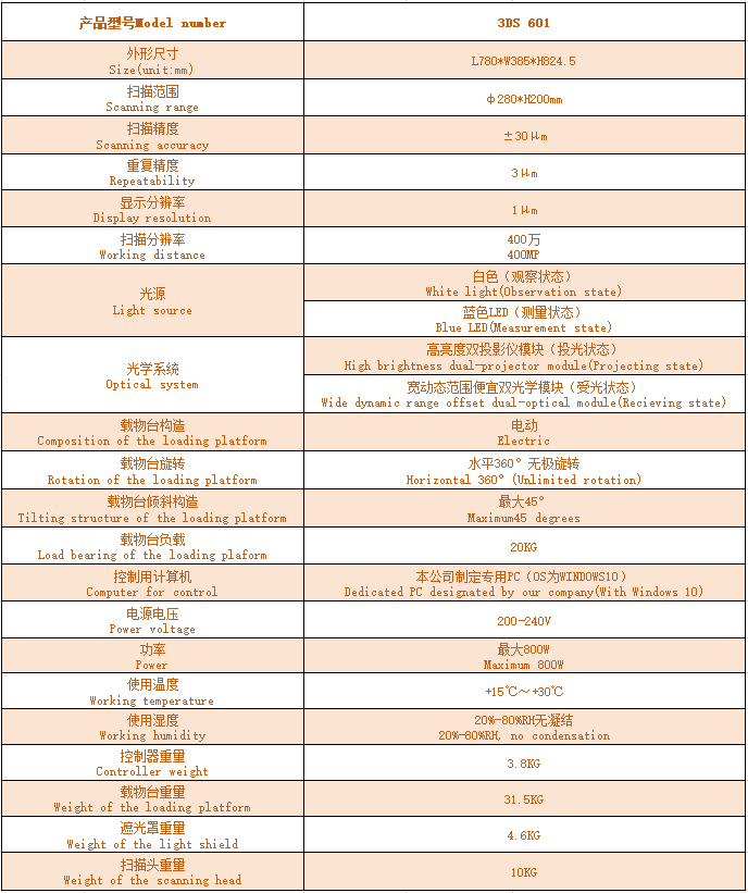 1.面光源覆蓋+可傾斜旋轉(zhuǎn)載物臺,讓掃描不留盲區(qū) Blue structured light plus a loading platform which can rotate horizontally 360°and tilt up to 45°, no blind area.